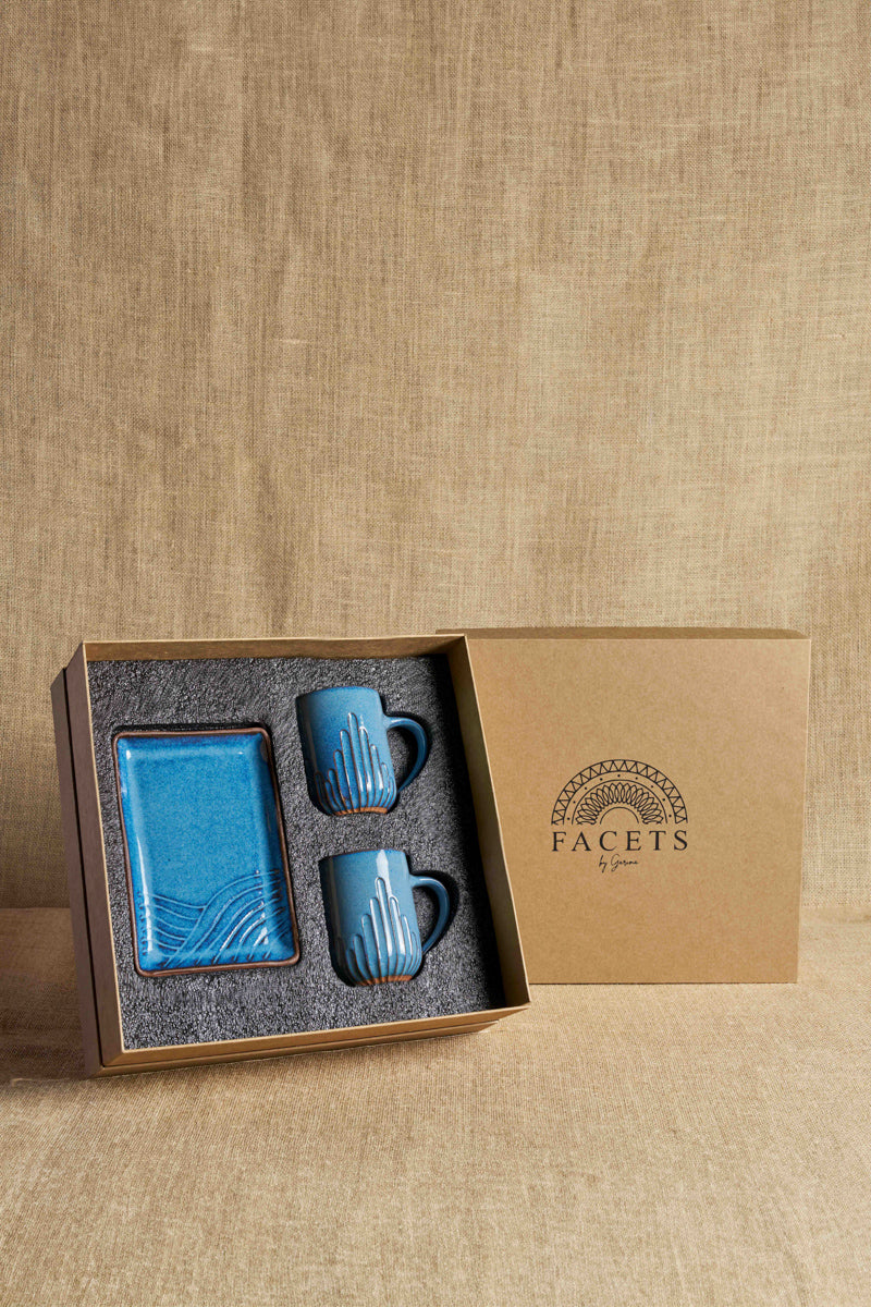 • Set of 2 Tiger Hill Tall Mugs and 1 Gata Loop Rectangular platter.